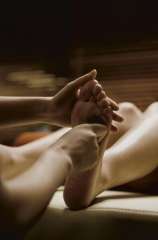 Homme mince sportif donne à femme massage tantrique naturiste . Body massage aux huiles .